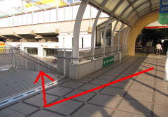 階段を降りたら、右へ曲がってください。 (ロータリーと反対方向です) ↓ ↓ |
