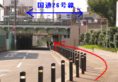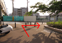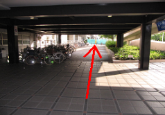 自転車が停まっている横を通って、突き当たりまでまっすぐ 進んでください。 ↓ ↓ |