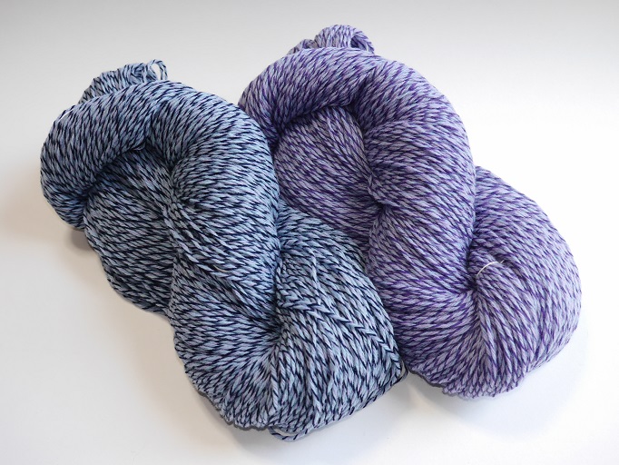 微妙に違う2パターンの杢メリヤスウール糸です。