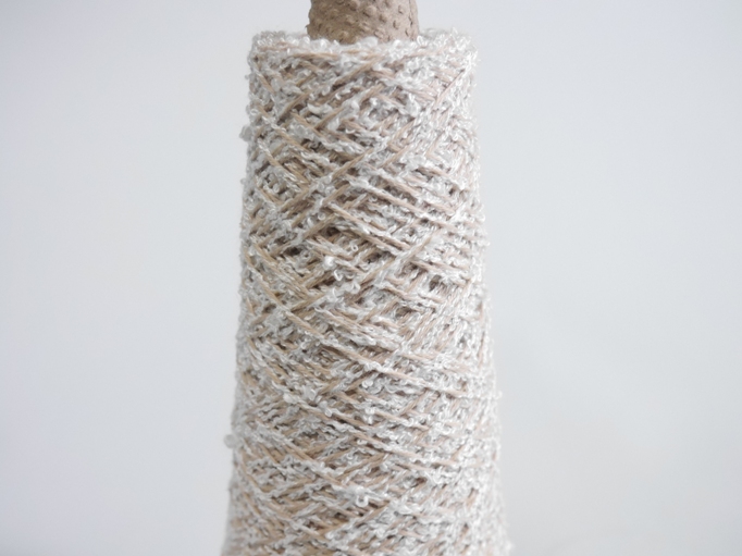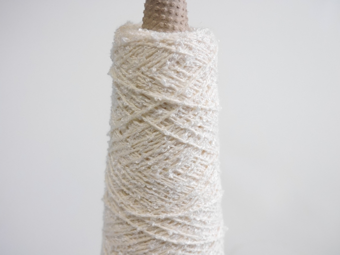 毛羽立ちが少なく高級糸といわれる「コーマ糸」とポコポコ「ブークレー」を