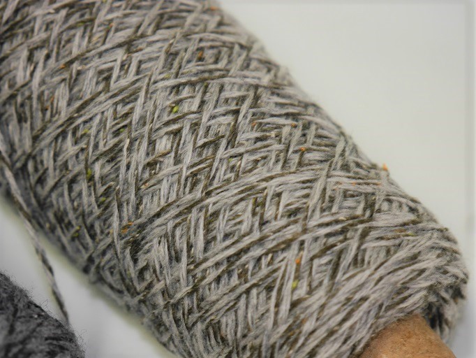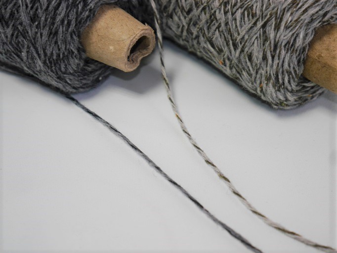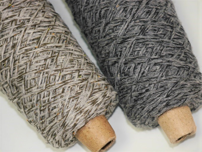手編み、手織り、どちらにもお使いいただける未縮絨のウールとシルクウール(ネップ入り)を撚り合わせました。